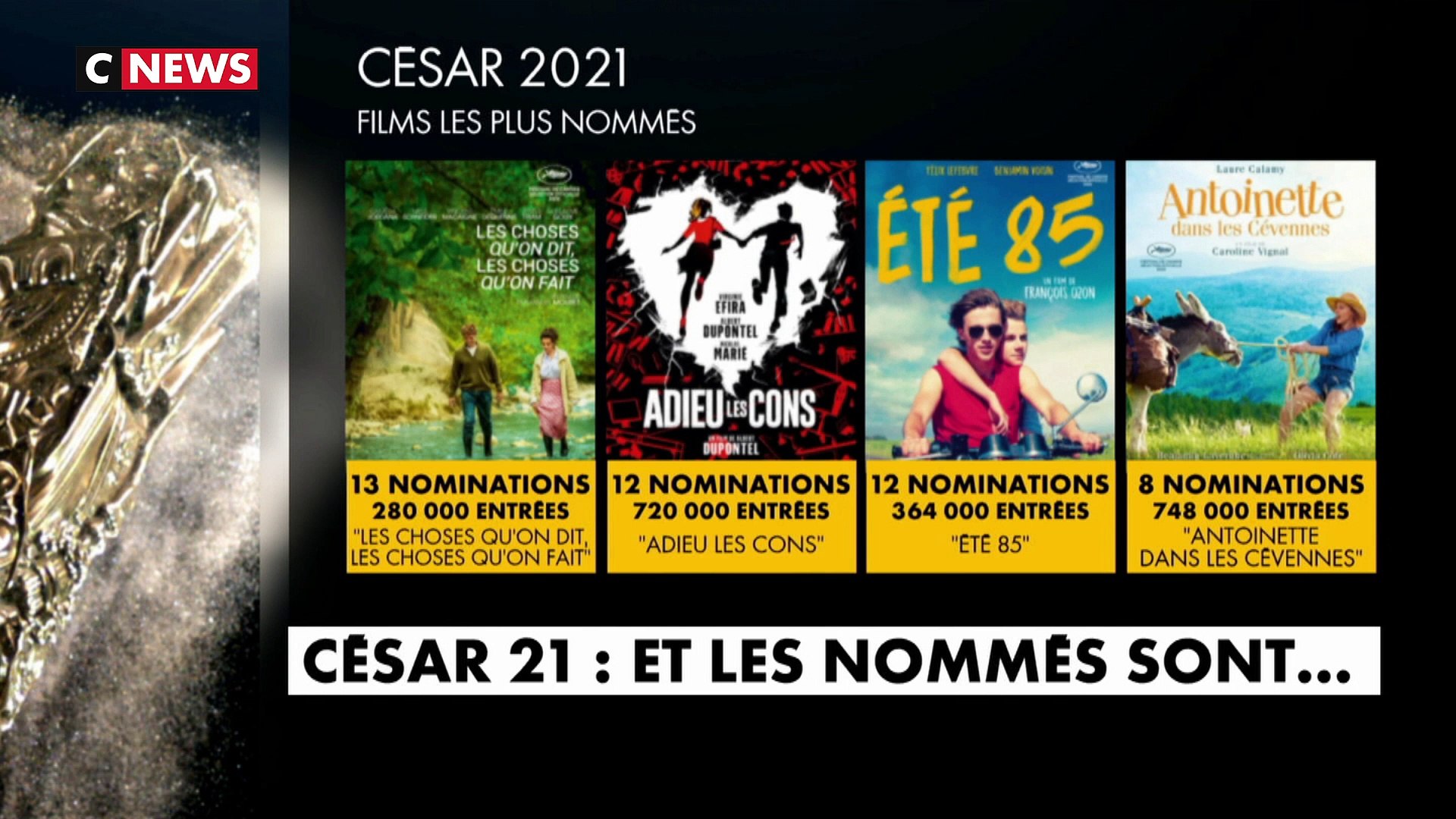 Qvgo8sb4bh8mxm from img.filmsactu.net The ceremony through the years. Liste officielle des nominations césar 2021 Ça va du césar du meilleur film, au césar du meilleur son en passant par celui. Génération guignols c'est l'occasion de retrouver les marionnettes dans tout ce qui les a rendu inoubliables de johnny hallyday à jacques chirac en passant p. Les rediffusions de césar 2021. César & techniques the révélations césar & production the césar des lycéens the nuits en or. Après une année très particulière, marquée par des mois de fermeture des salles pour cause de pandémie, les 4292 membres de l'académie ont. Après les césars, explique le ccm, qu'importe si les bêtes meurent va poursuivre sa belle carrière en avril 2021 avec sa nomination par l'académie des oscars.